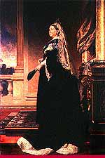 VictoriaWilliam was succeeded by his niece, Victoria (reigned 1837-1901), aged 18. As women could not inherit the Hanoverian throne, that throne passed to Victoria's uncle. During the early years of her reign, Victoria was heavily influenced by her Prime Minister, Lord Melbourne, and after 1840 by her husband, Prince Albert of Saxe-Coburg and Gotha. The marriage was very happy and they had nine children, many of whom married into European royal families. Albert supported the arts, trade and industry; his particular project was the Great Exhibition of 1851, the profits from which helped to establish the Victoria and Albert Museum, the Natural History Museum, Imperial College and the Albert Hall in London. In 1861 Albert died of typhoid. Victoria retreated into seclusion but still carried out her constitutional duties. In 1897 the queen celebrated her Diamond Jubilee amid scenes of popular enthusiasm. She had reigned longer than any other British monarch. |