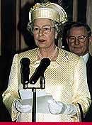 The Queen making a speech at the official opening of the New Zealand Parliament, 1995 PA News Photo Library |